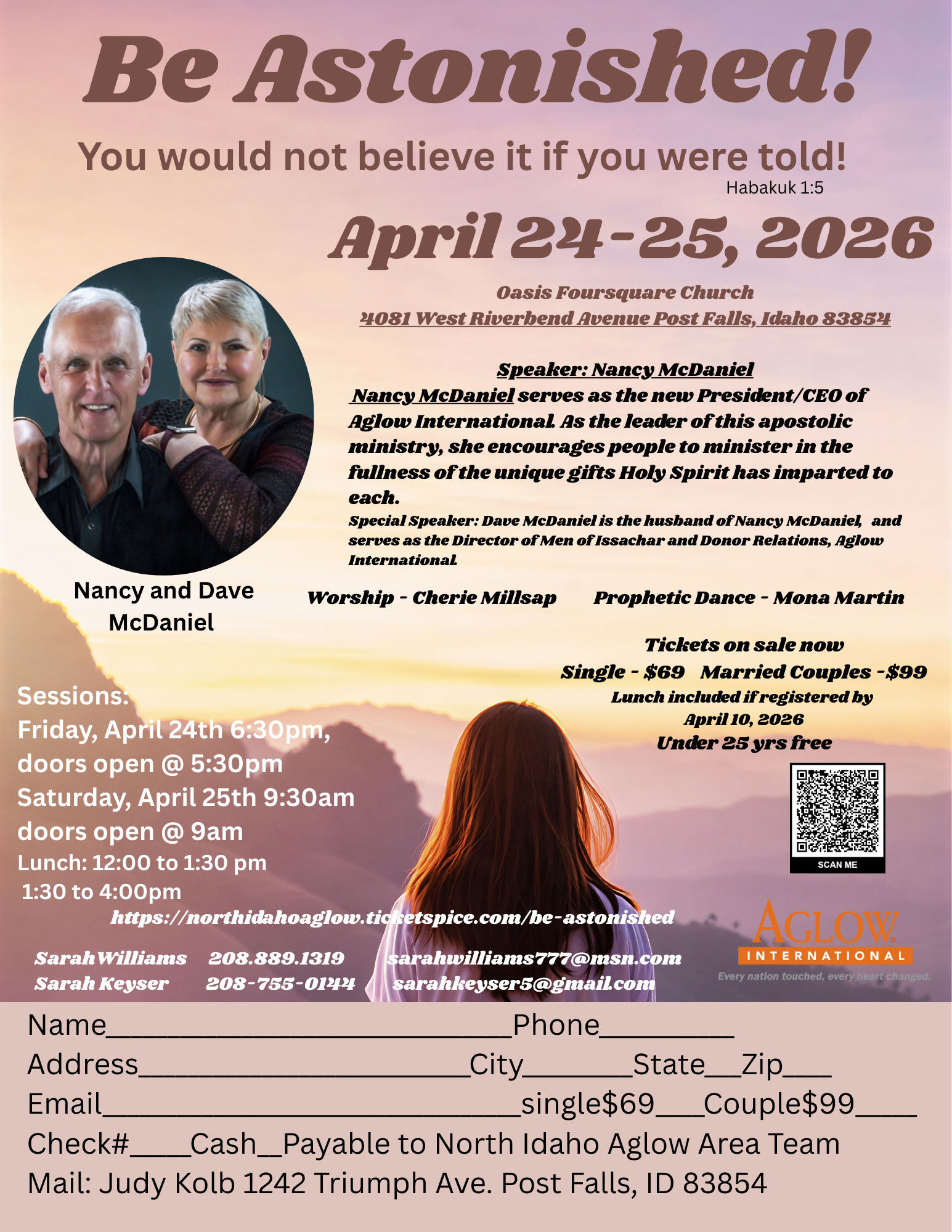 Aglow International’s new President/CEO, Nancy McDaniel, along with her husband Dave, will be sharing the vision and future direction of this global ministry.